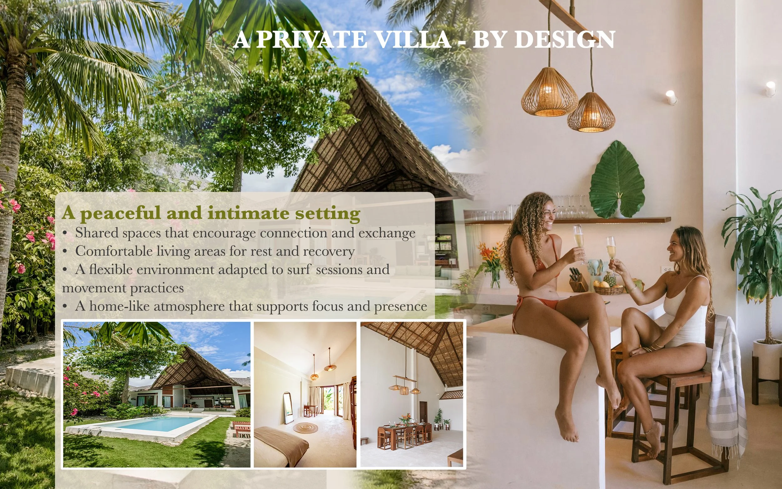 More than accommodation, the villa is an integral part of the retreat. It is a shared space where daily life, rest, and moments of exchange naturally coexist. Designed to support recovery, presence, and connection, the villa creates a gentle rhythm that allows the experience to unfold with ease.